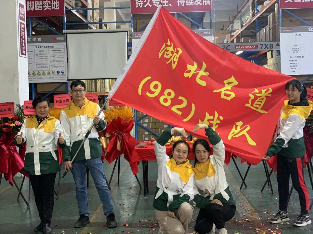 考慮到當(dāng)?shù)胤酪咴颍敬渭舨蕛x式一切從簡(jiǎn)但不失喜慶。集團(tuán)公司汽車備件產(chǎn)業(yè)鏈負(fù)責(zé)人-長(zhǎng)沙鴻道汽車有限公司曾慧純總經(jīng)理及邀請(qǐng)的就近幾位嘉賓出席了開業(yè)儀式,還有湖北名道團(tuán)隊(duì)等共同見證了本次長(zhǎng)城汽車備件-武漢倉的盛大開業(yè)。