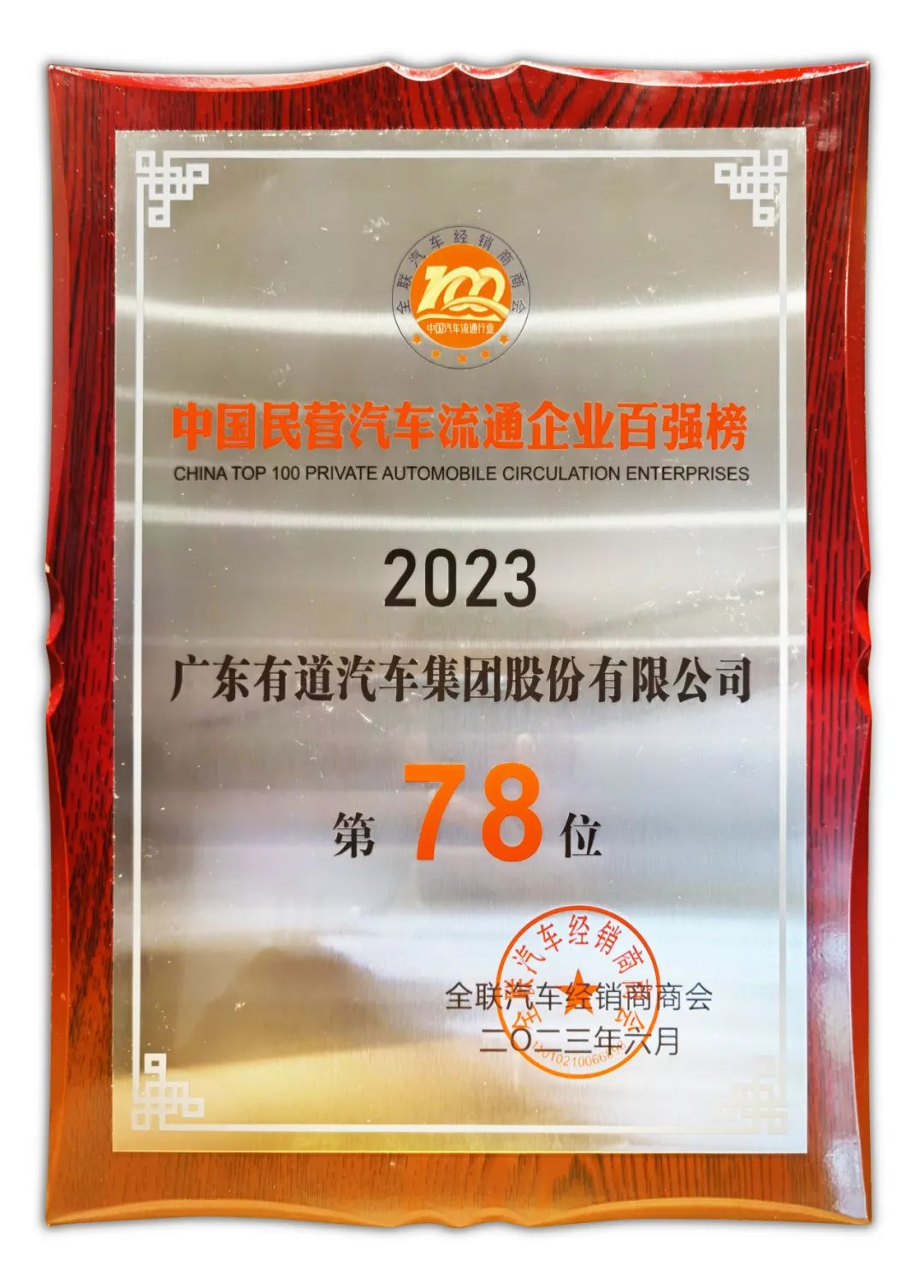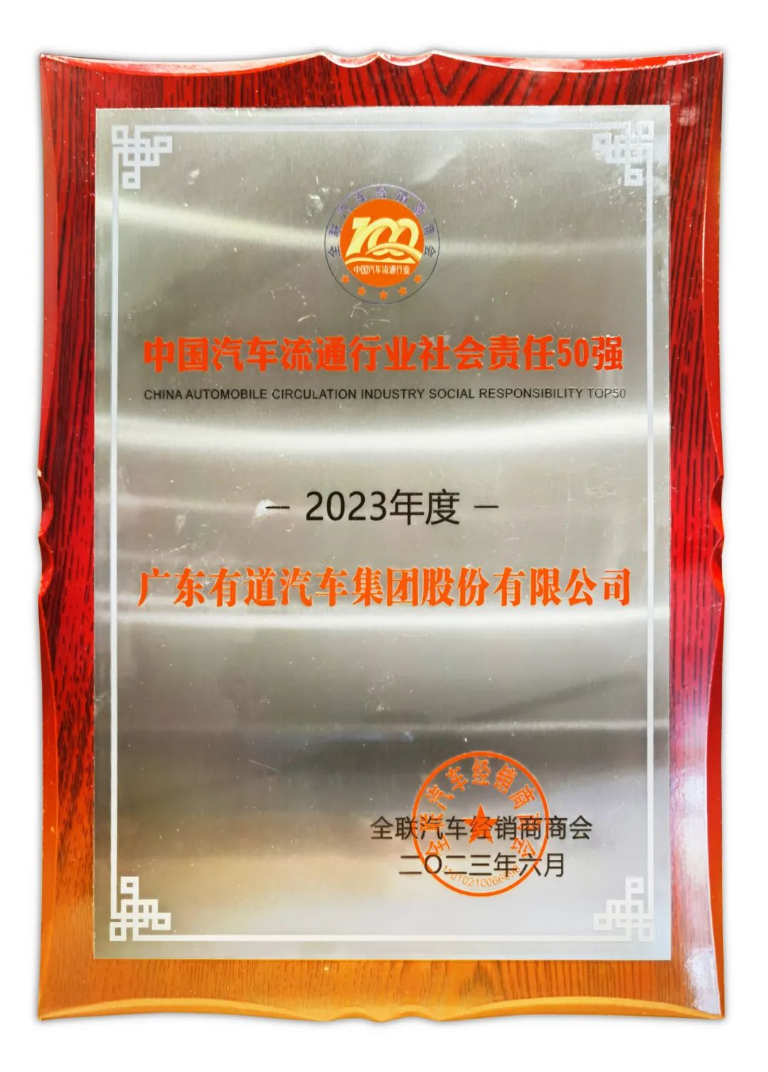 會(huì)上,全國工商業(yè)聯(lián)合會(huì)汽車經(jīng)銷商商會(huì)發(fā)布了“2023中國汽車流通行業(yè)百強(qiáng)榜”,有道汽車集團(tuán)以422068萬元的營收總額,榮登“中國民營汽車流通企業(yè)百強(qiáng)榜”第78位,并榮獲“2023中國汽車流通行業(yè)社會(huì)責(zé)任50強(qiáng)榜單”的稱號(hào)。