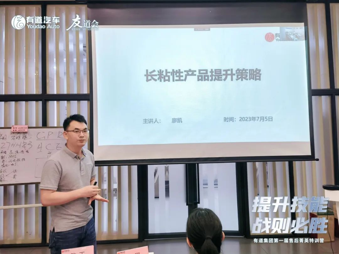 在《長(zhǎng)粘性產(chǎn)品提升策略》課程中,郴州亞龍哈弗店售后經(jīng)理廖凱通過(guò)粘性產(chǎn)品類別講解、粘性產(chǎn)品設(shè)計(jì)要點(diǎn)的探討、粘性產(chǎn)品與粘性服務(wù)體系的搭建等授課環(huán)節(jié),分享設(shè)計(jì)長(zhǎng)粘性產(chǎn)品的經(jīng)驗(yàn)技巧。