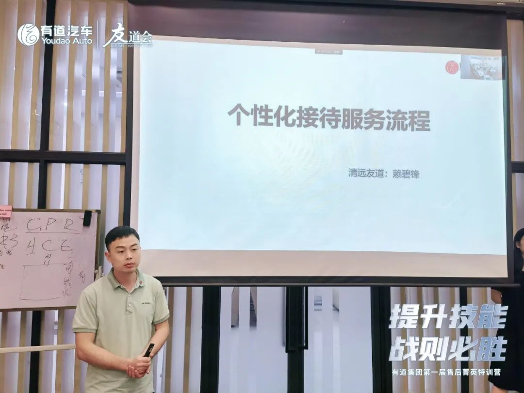 在《個(gè)性化接待流程打造》課程中,清遠(yuǎn)友道哈弗售后經(jīng)理賴碧鋒、廣州天河魏店售后經(jīng)理謝麗雙兩位講師分別向?qū)W員解析了個(gè)性化接待服務(wù)的定義和重要性。