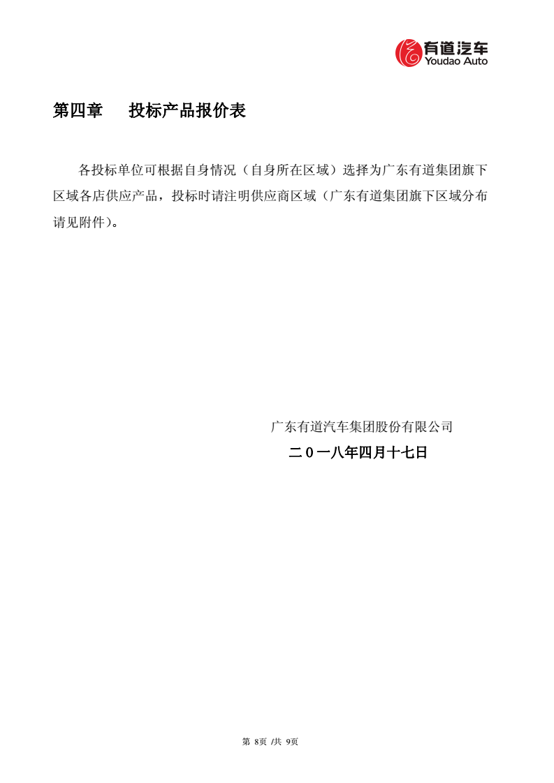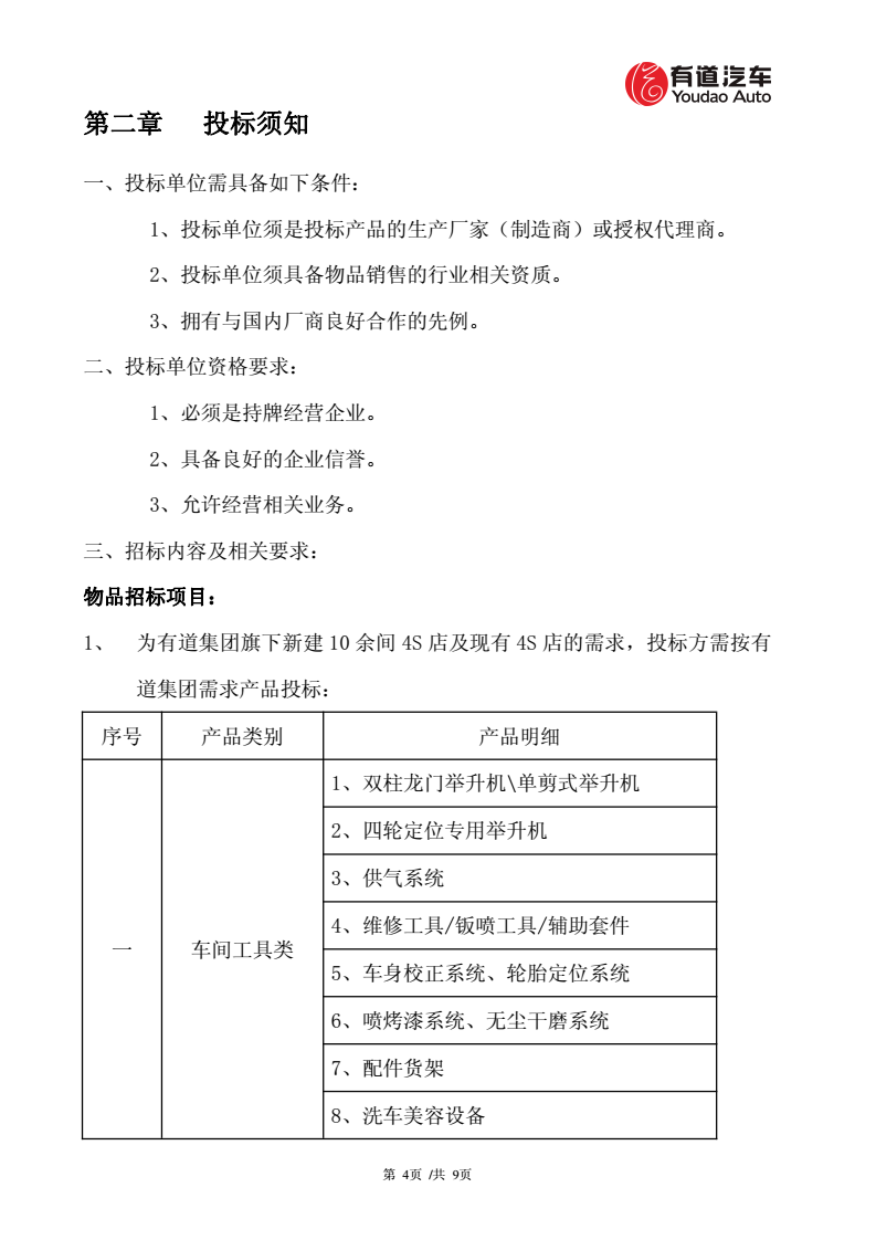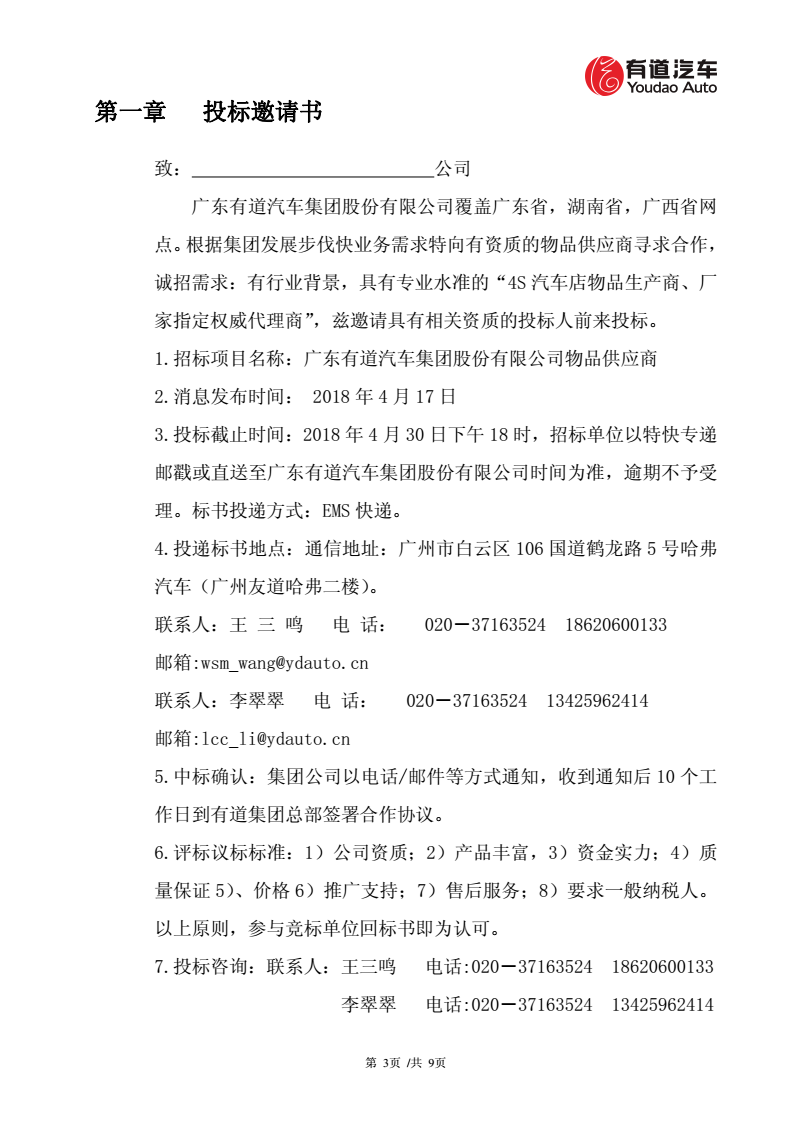廣東有道汽車集團(tuán)股份有限公司物品采購招標(biāo)