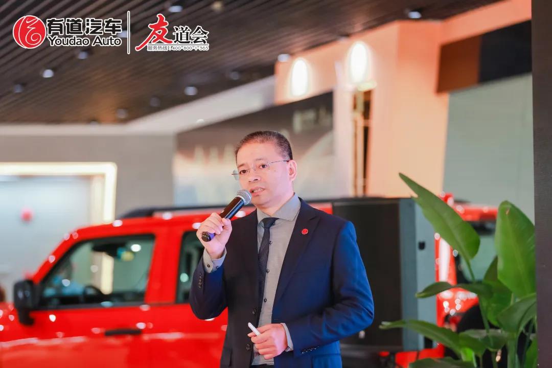 廣東大粵國際旅行社旅游經(jīng)理人/旅行設(shè)計(jì)師李建先生上臺(tái)分享與有道汽車集團(tuán)的合作項(xiàng)目。