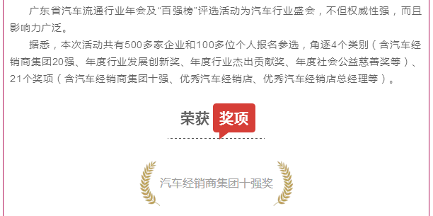 【喜訊】有道集團榮獲“廣東省汽車集團經(jīng)銷商十強”獎
